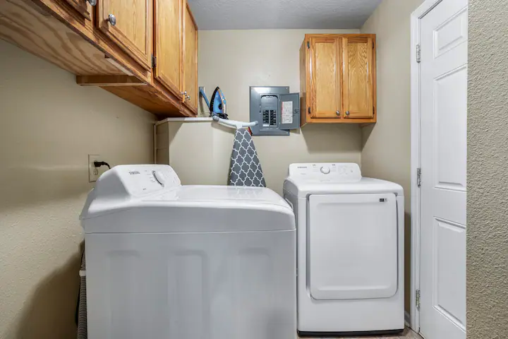 - Amenities: Air conditioning, BBQ outdoor, Entire house, Fenced yard with gate, Fire Extinguisher, Free parking, Free WiFi, Hair dryer, Hangers, Iron, Keyless entry, Kitchen, Large yard, Patio, Pet friendly, Pets Accepted w/fee, Private fenced yard, Smoke detector, Washer