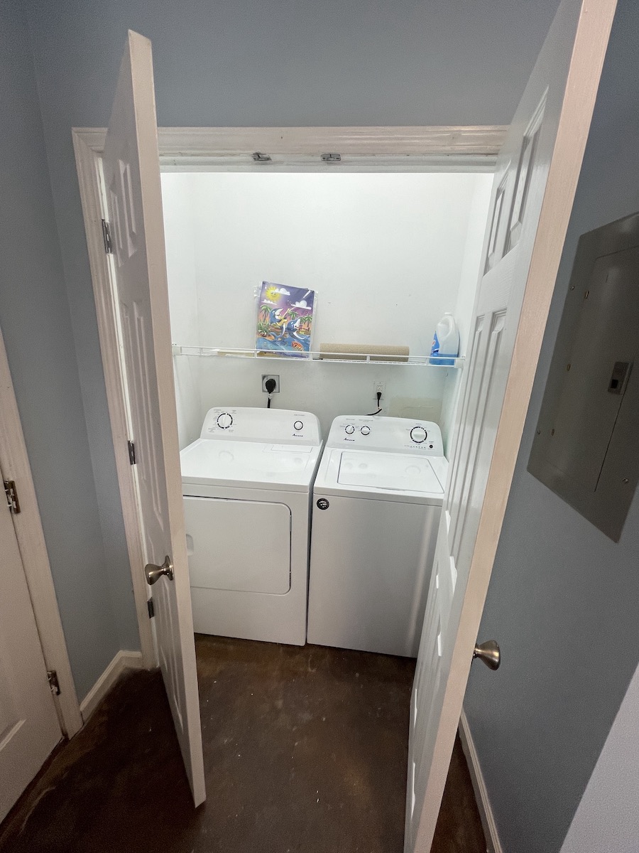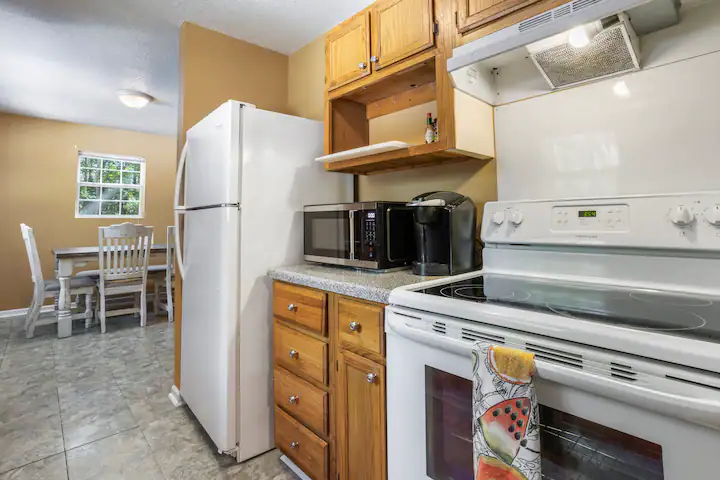 - Amenities: Air conditioning, BBQ outdoor, Ceiling fans, Coffee service, Dining area, Dinnerware, Dishwasher, Dryer, Exterior Security Camera(s), Fenced yard with gate, Fire Extinguisher, Fishing close by, Free parking, Free WiFi, Gas Range, Hair dryer, Hand soap, Hangers, Iron, Ironing Board, Keyless entry, Kitchen, Microwave, Patio Dining Set with Umbrella, Refrigerator, Smoke detector, Toaster, Towels, Walk to restaurant(s), Washer