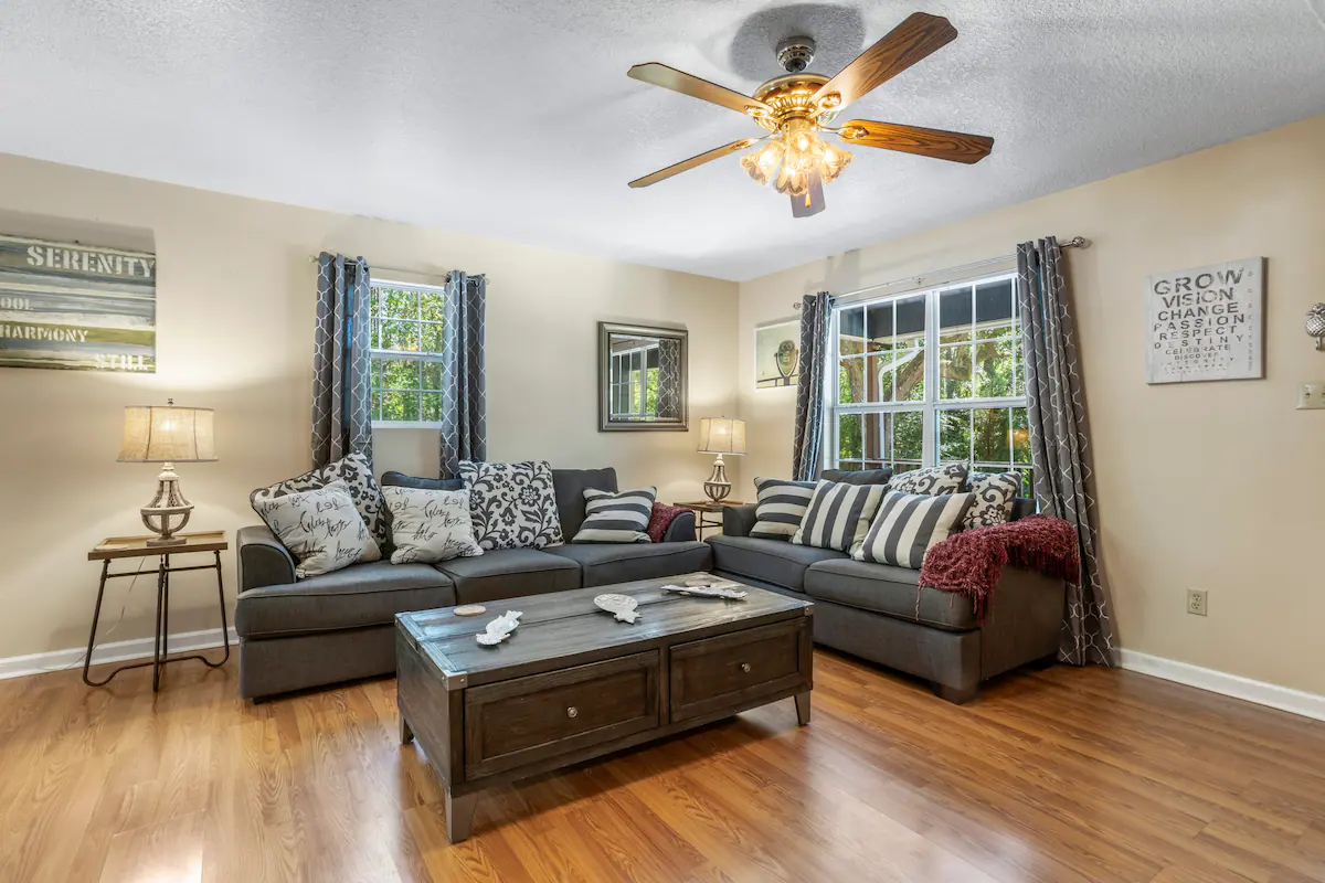 PROPERTY NO LONGER AVAILABLE You have arrived at a great vacation destination. 3 bedrooms with 4 beds that accommodate up to 8 people. The Coastal Serenity is surrounded with trees on a very large cut-de-sac lot. Completely private so your group can enjoy your retreat without interruption. Our beautiful house is almost … Continue reading “Coastal Serenity”