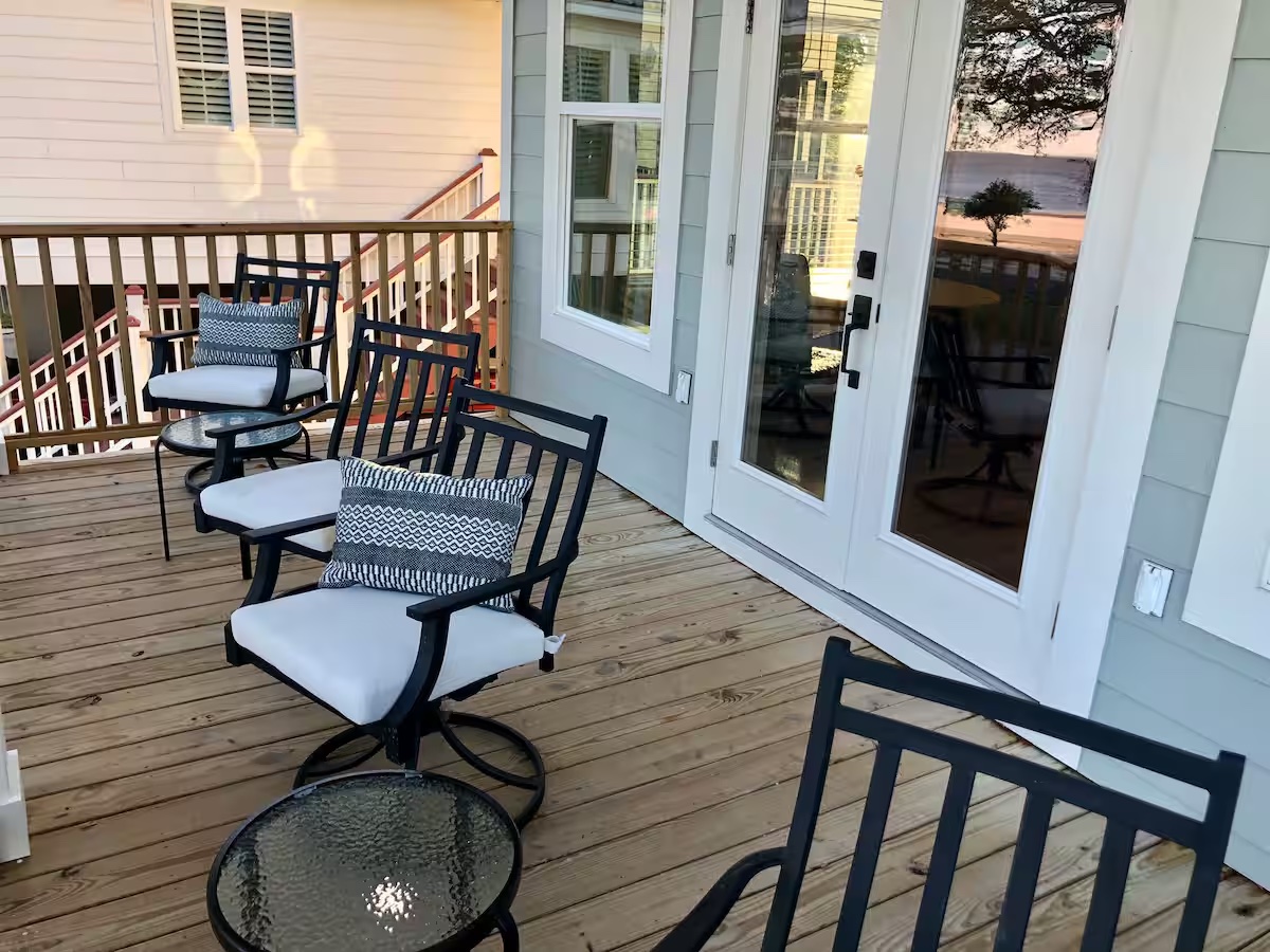 - Amenities: Air conditioning, Balcony, BBQ outdoor, Beachfront, Coffee service, Dining area, Discounts for longer stays, Dryer, Entire house, Fire Extinguisher, First aid kit, Fishing close by, Flat-screen smart TV's, Free parking, Free WiFi, Hair dryer, Hangers, Iron, Keyless entry, Kitchen, Patio, Porch with seating beach view, Smoke detector, USB charger station, Walk to restaurant(s), Washer